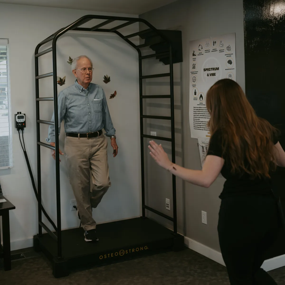 Quick, painless sessions for people of all ages and levels of activity to promote skeletal strength using osteogenic loading..
